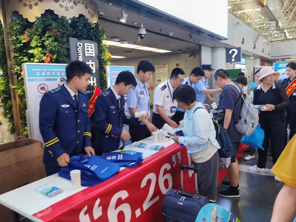 國際禁毒日當(dāng)天,公司團委組織團員青年在首都機場2、3號航站樓出發(fā)大廳,面向旅客、機場工作人員發(fā)放禁毒宣傳品。