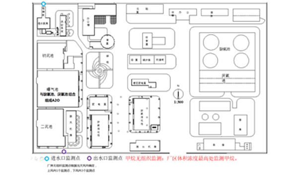 企業(yè)自行監(jiān)測點位示意圖。(在廠區(qū)平面圖上標(biāo)注監(jiān)測點位置、名稱、編號及經(jīng)緯度,并附排放口設(shè)置的監(jiān)測點位照片)