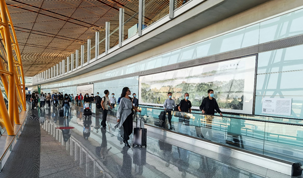 為了持續(xù)豐富“禮迎禮送”人文風(fēng)景線,打造“國(guó)門新十景”,首都機(jī)場(chǎng)與北京市文史研究館合作,于近日在首都機(jī)場(chǎng)3號(hào)航站樓國(guó)內(nèi)到達(dá)區(qū)推出以大運(yùn)河北京段為藍(lán)本的“北京神韻”大運(yùn)河文化主題展。《白浮聽泉》《大都古風(fēng)》《古塔霽雪》《臨漕秀色》4幅10米長(zhǎng)卷,描摹出蔚然壯觀的盛景美圖,在展現(xiàn)首都風(fēng)范、古都風(fēng)韻、時(shí)代風(fēng)貌的同時(shí),進(jìn)一步豐富旅客出行體驗(yàn),提升旅客滿意度和獲得感。