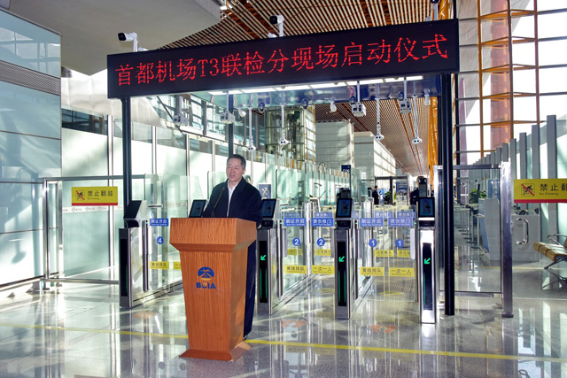 1月14日下午,首都機場舉行T3聯(lián)檢分現(xiàn)場啟動儀式。首都機場集團公司黨委委員、首都機場股份公司黨委書記張國良,首都機場股份公司副總經理杜強,北京出入境邊防檢查總站副總站長吉利霞,首都機場海關副關長段凱,中國國際航空股份有限公司總會計師肖烽,北京首都機場航空安保公司總經理李萬明等領導出席啟動儀式。