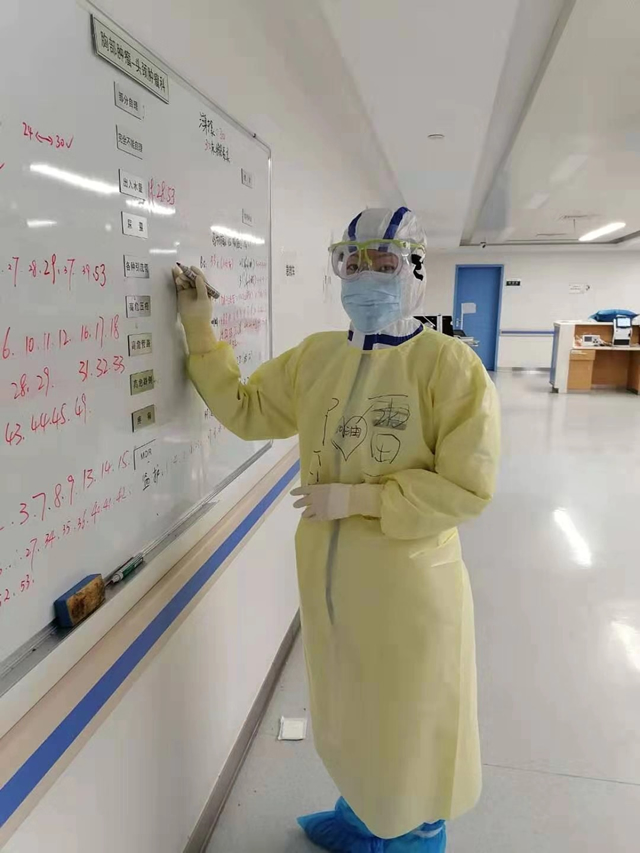 2月11日是雷夢君馳援武漢的第5天。8歲的女兒用畫筆表達了對媽媽的思念?!皨寢專闶裁磿r候回來呀,我想你了!”聽著電話里女兒稚嫩的童音,雷夢君恨不得立刻飛回女兒身邊。但是,她知道現(xiàn)在不是多愁善感的時候,因為防疫一線還有更重要的工作在等她?!袄掀牛依镉形艺疹?,你安心工作。在前線注意防護,我和孩子等你平安回來?!焙沃疚淞⒓唇o老婆打了一劑“強心劑”,他知道,這位身披“戰(zhàn)服”的柔弱女子此刻需要他這個堅強的后盾,才能全身心投入這場沒有硝煙的“戰(zhàn)役”中。正如雷夢君留給女兒的信中所述:“人,是要有信仰的,有信念的,我們一定會打贏這場防疫戰(zhàn)。我要做全家的驕傲,做你的榜樣!”