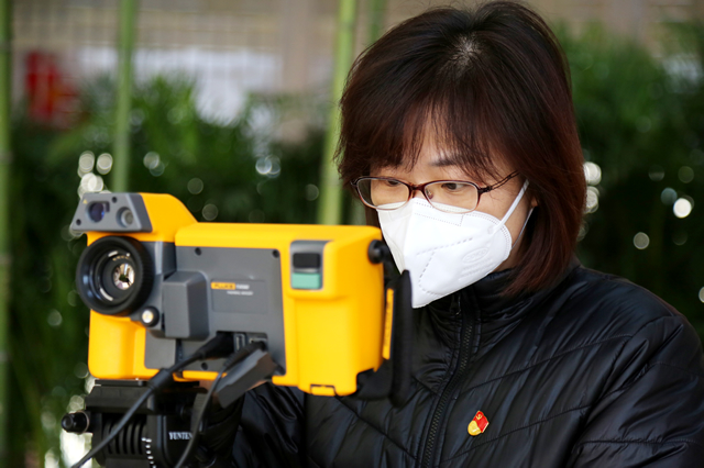 “測溫儀的采購是這些采購物資中的重中之重。因為疫情不等人,我們在簽合同的時候,在各部門的高度配合下,完成了一項基本不可能的任務?!弊T菲回憶當時的情景時仍滿心激動和感激,“一天,只用了一天就完成了合同的簽訂。”此次采購的測溫儀共計48臺,分兩批次到貨,分別應用在航站樓、公務機、T3要客等重要位置。“當時我們計劃是要買50臺,但是有兩臺有瑕疵,我們覺得不能讓設備帶病上崗,于是退回了兩臺?!弊T菲介紹說,“為了讓這些設備設施物盡其用,并發(fā)揮最大化的效用,我們春節(jié)有一般時間是長在航站樓內的,勘測甄選最佳的安裝調試效果,每個人當天的運動量都在兩萬多步。尤其是在點位統(tǒng)計的時候,我們一天在樓里轉了四遍,腳走得路太多,鞋子都脫不下來?!?/p>